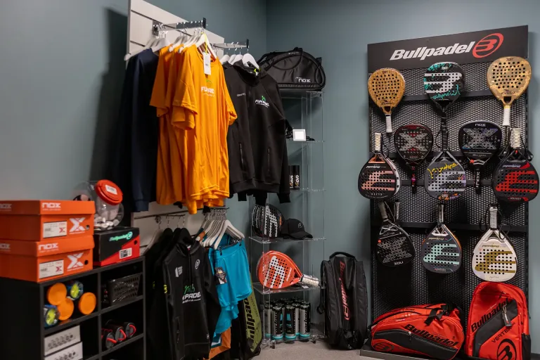 Vi tilbyr et bredt utvalg av profesjonelt padelutstyr for utlån eller kjøp, slik at du kan spille med det beste utstyret.